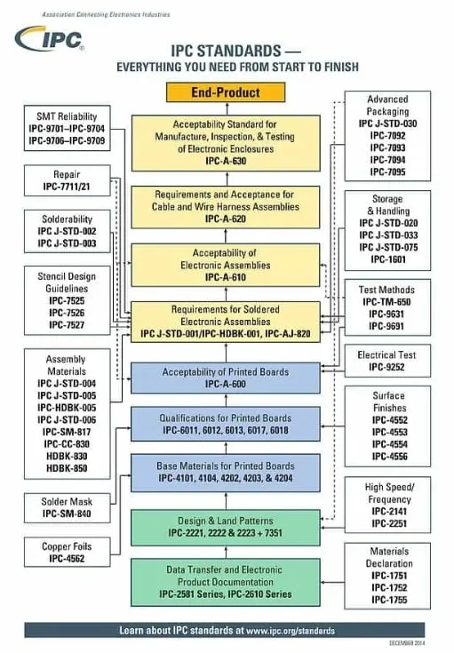 代表標準IPC-A-600PCB檢驗)、IPC-A-610(組裝品驗收)、IPC/WHMA-A-620(線束與纜線製造標準)